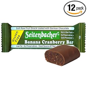 Product Description : Seitenbacher Gluten Free Banana Cranberry Bar comes in a 1.8 ounce bar. It contains dried banana, dried cranberries, chocolate (brown cane sugar, cocoa butter, whole milk powder, cocoa, gramsO free soy lecithin). It is Gluten free product. All natural fruit bar with unsulphured bananas and cranberries covert with German milk chocolate. This special Seitenbacher milk chocolate is free of artificial flavor (no vanillin) and gramsO Free. The bar is yummy and very healthy.